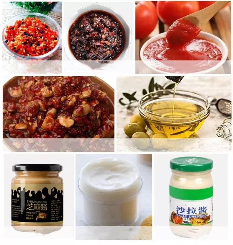 The sauce filling machine is equipped with mixing motor for granular jam, and is equipped with a stirrer. . The filling volume and filling speed can be adjusted conveniently, and the non-special shaped bottles can be adjusted in different gauges. There is no need to adjust parts, adjustments, etc.; the feed pipe of the equipment is equipped with a pneumatic ball valve, which can be filled in real time at the same time. Blocking prevents back flow of materials during the material filling process, and improves the accuracy of filling materials.
