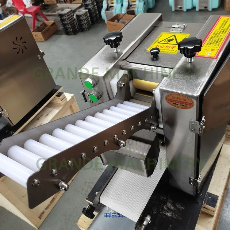 This shrimp dumpling wrapper skin making machine is widely used in many occasions, such as restaurant, canteen, school, etc. It has features of low noise, automatic, easy operation, high efficiency, reliable working, etc.